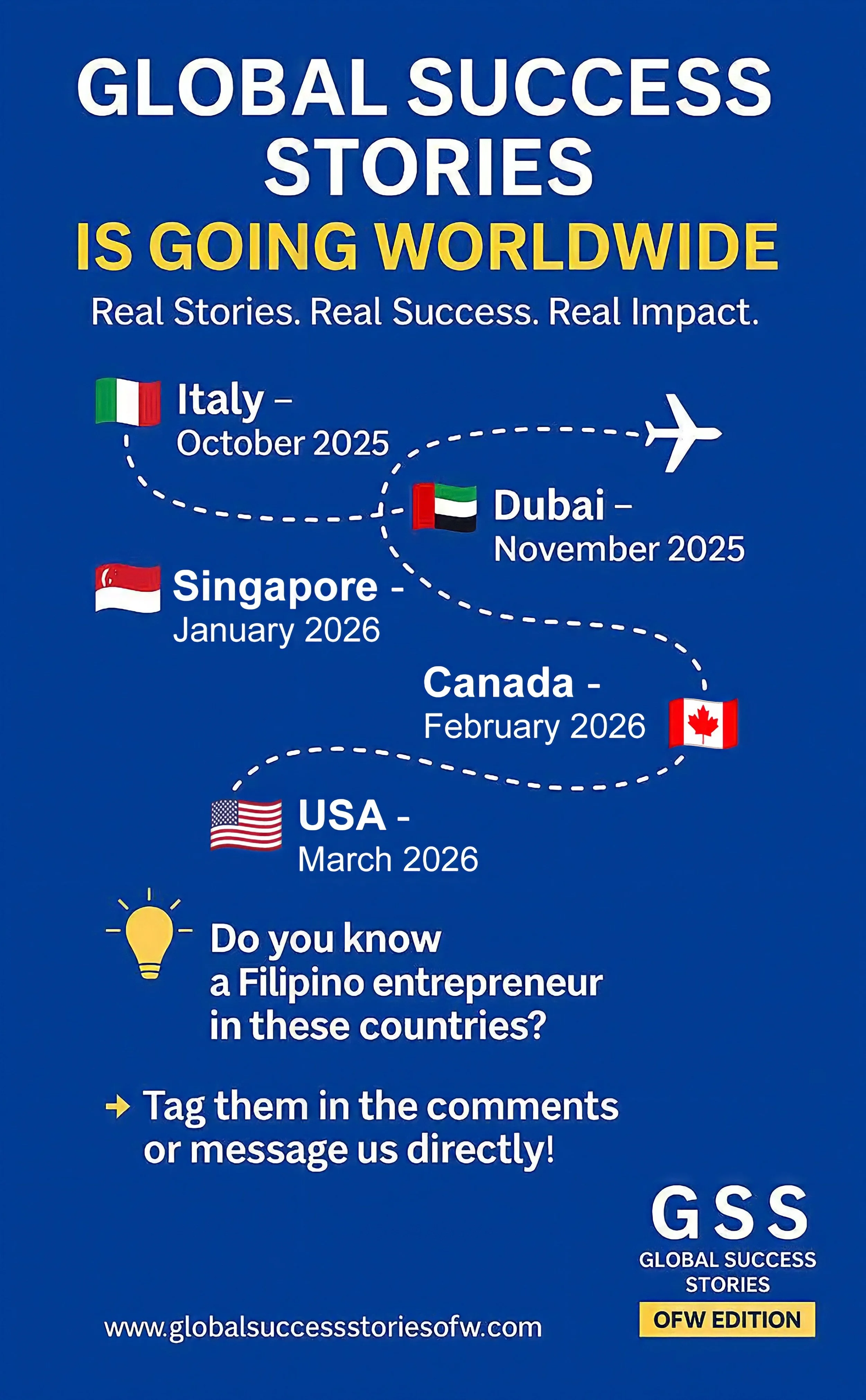 Global Success Stories: OFW Edition is expanding its journey across the world from Europe to the Middle East, Asia, and North America. Our mission remains the same wherever we go: to uncover the real stories of Filipinos who turned challenges into opportunities, proving that success knows no borders.